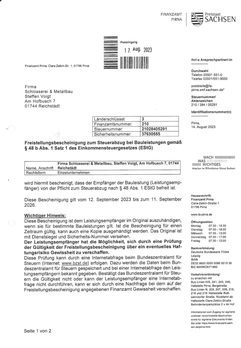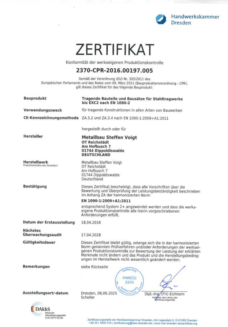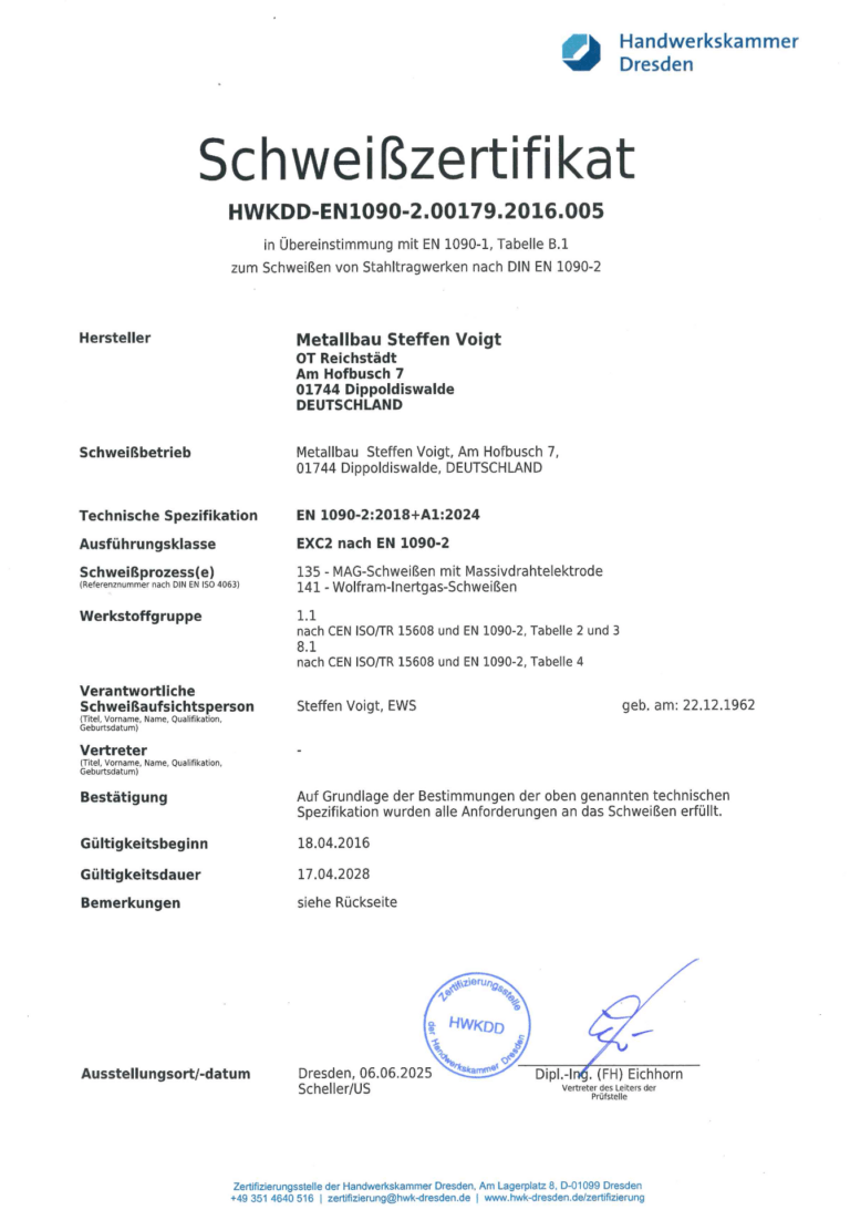 Im Februar 1996 konnten wir auf dem Industriegebiet in Reichstädt eine neue Werkhalle beziehen. Damit ergaben sich für uns bedeutend bessere Produktions-und Arbeitsbedingungen. Zur Zeit beschäftigen wir drei Metallbauer.